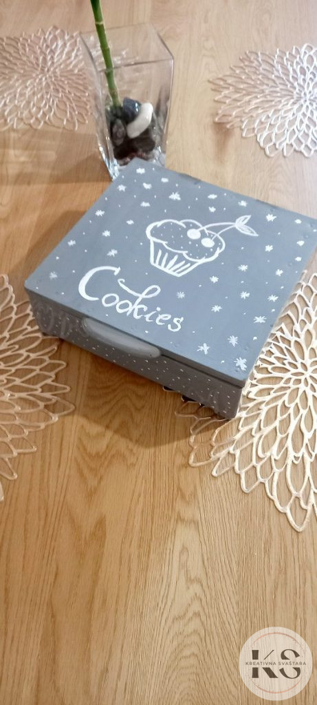 S obzirom da je plitka, u nju je bilo moguće pohraniti samo nekakve sitnice kao što su nakit, začini i slično. Kutiju za nakit već imam pa sam išla malo zaviriti u špajz da vidim što bi stalo unutra i već na prvi pogled sam skužila da bi kutija u kojoj bih držala potrepštine za pravljenje kolača bila pun pogodak.